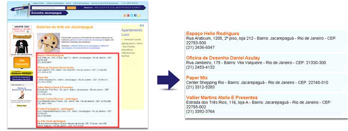 Seu anúncio aparece em uma listagem de empresas composta por Nome (ou empresa) + Endereço + Telefone.